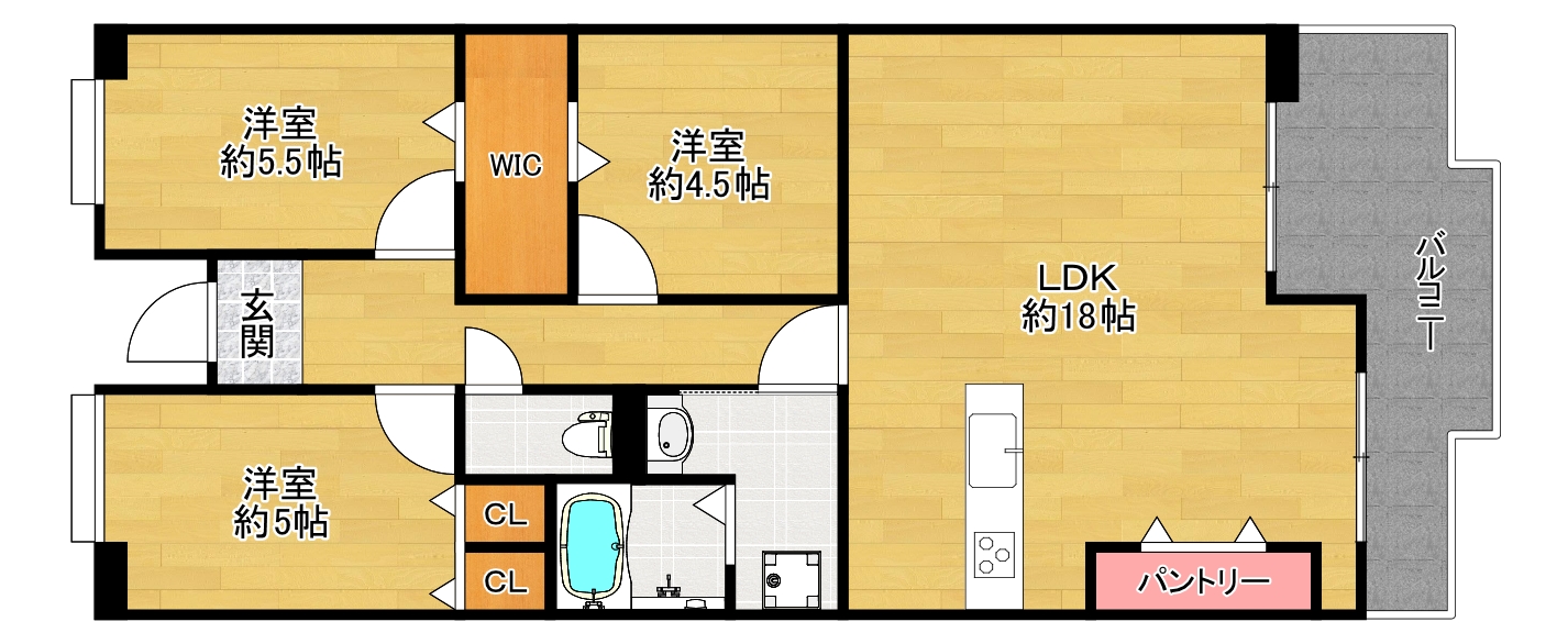 和室を洋室に変更、全室フローリングでリビングも広くなります!